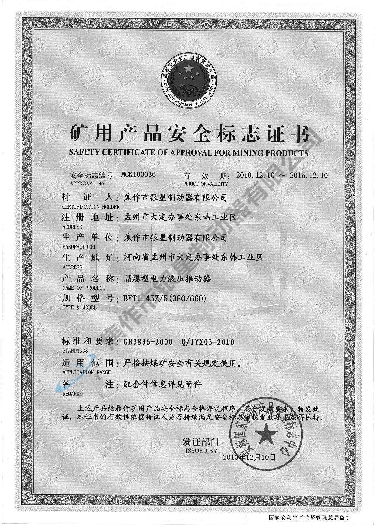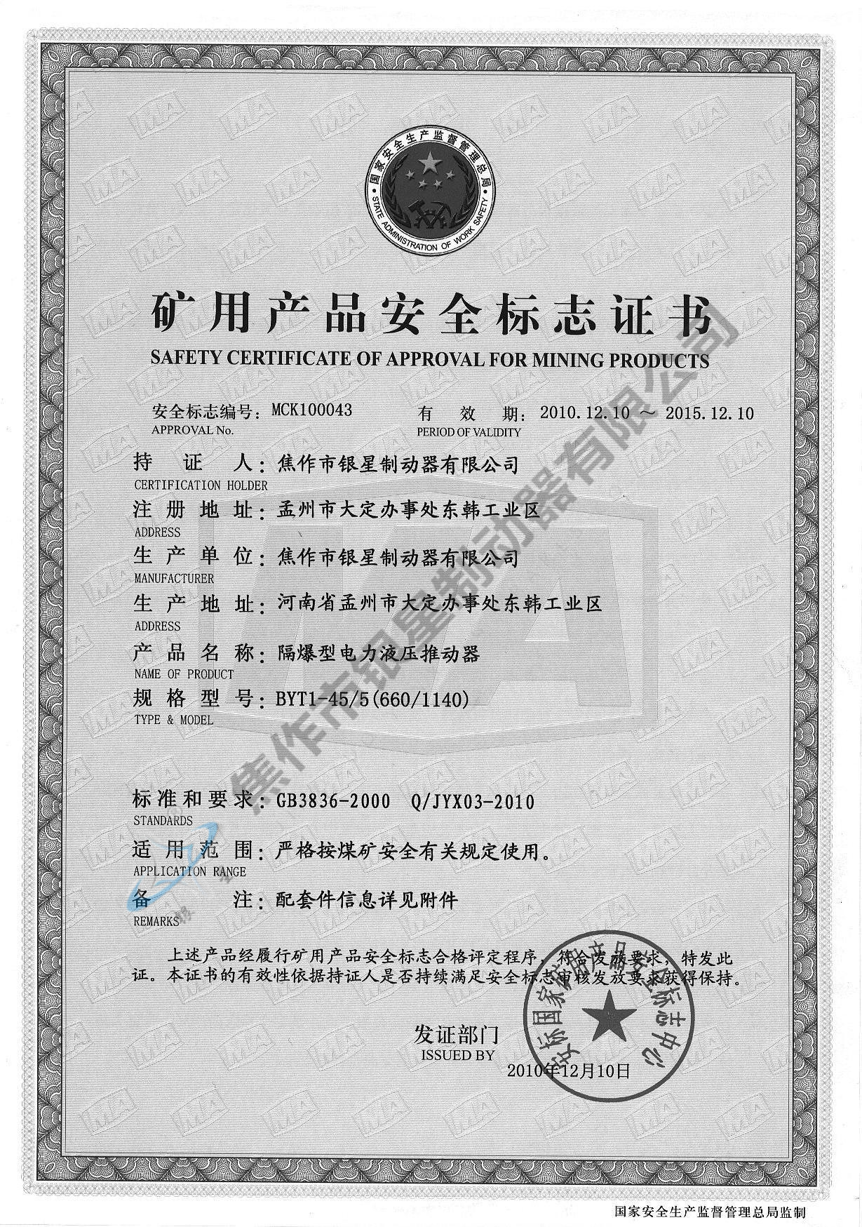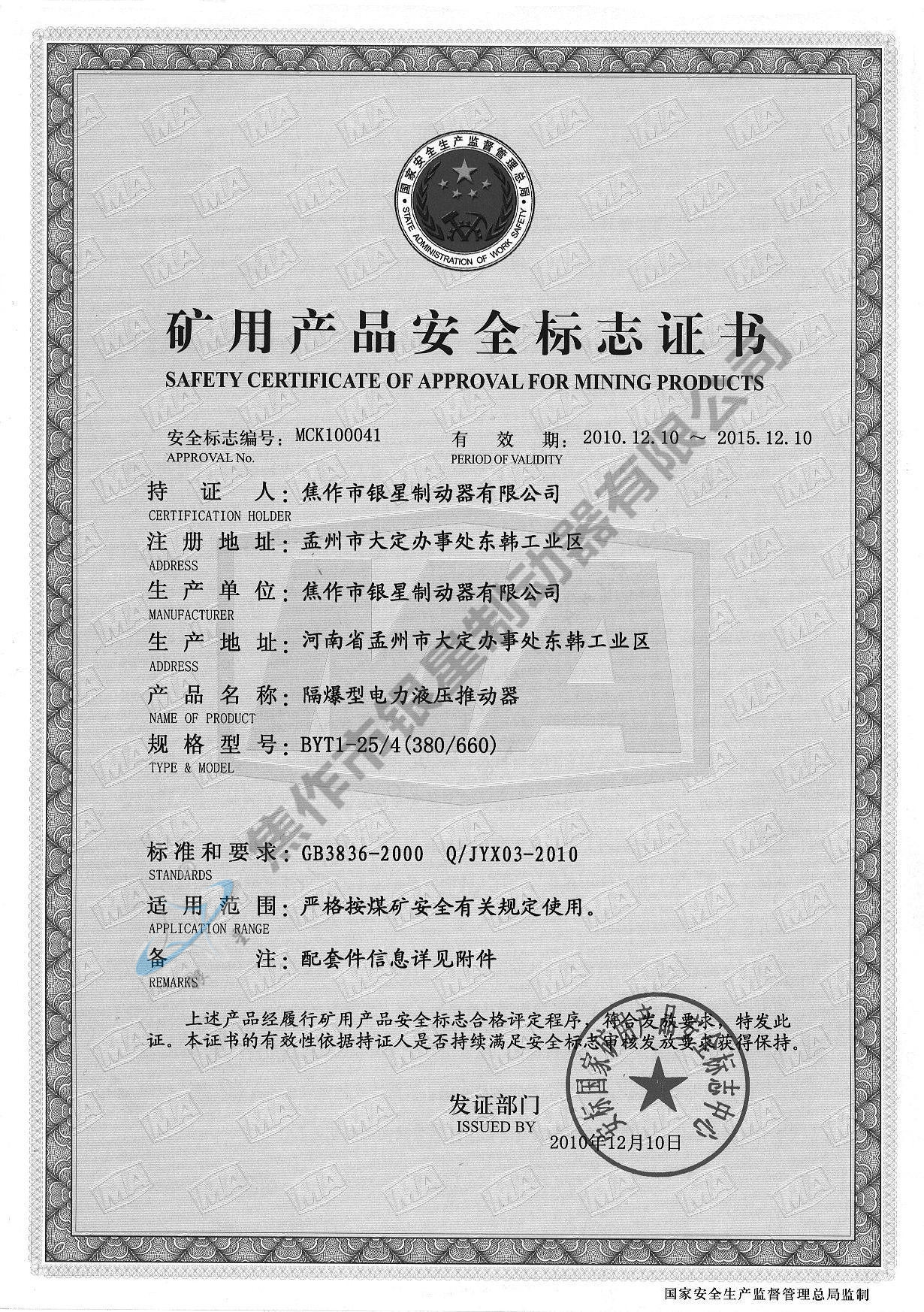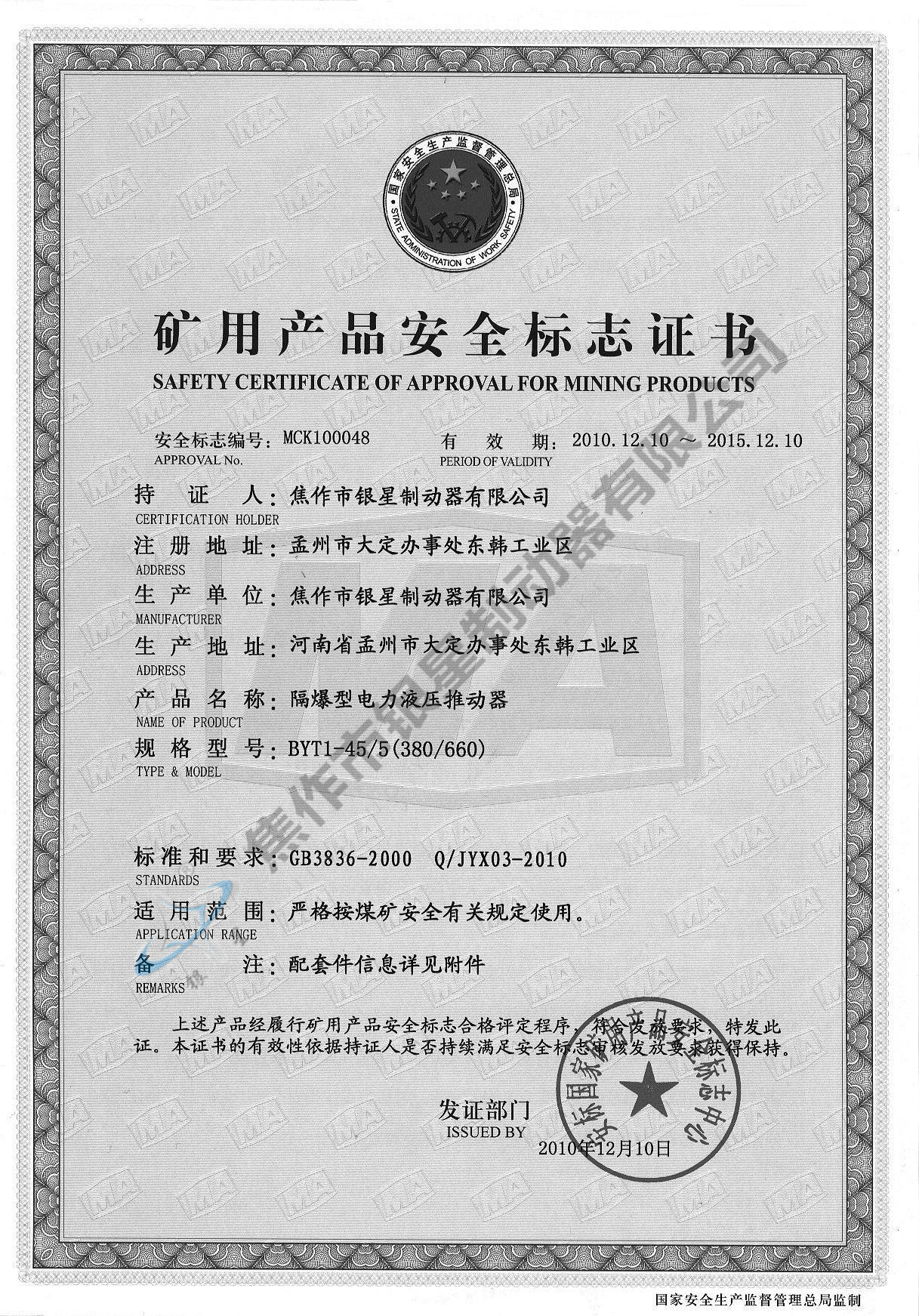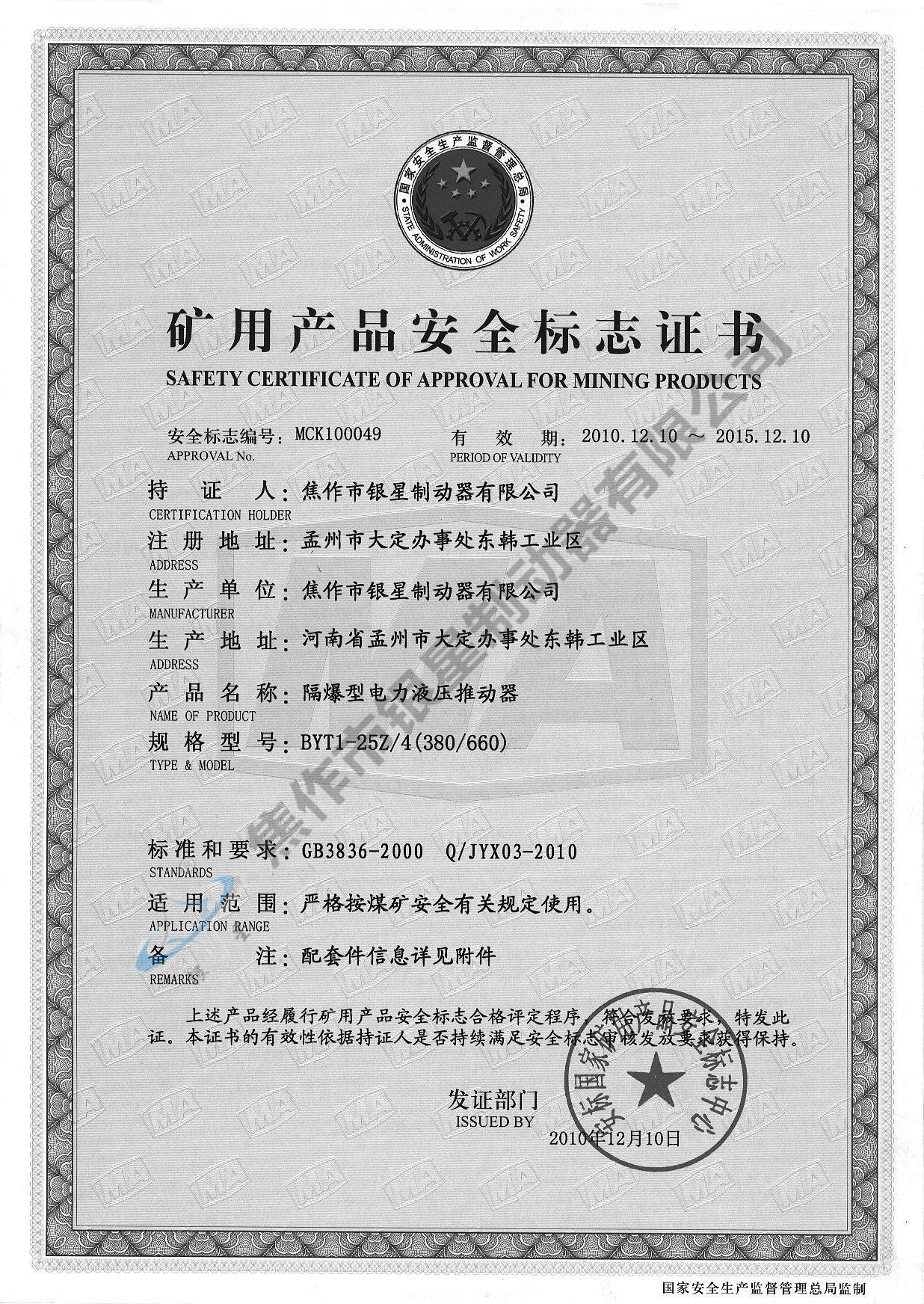 Explosion-proof certificate